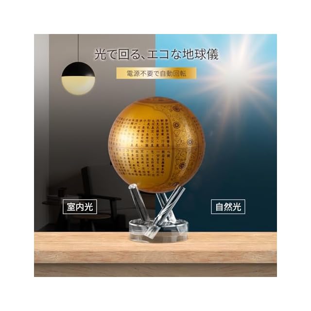 【環境に優しい太陽光発電式】この地球儀は、室内の光や間接的な日光で自動回転する太陽光発電式です。電池や配線が不要で、エコフレンドリーな設計が特徴。手軽に設置できるため、どこでも楽しむことができ、忙しい日常の中でも癒しのインテリアとして活躍します。美しい地球儀の動きを静かに再現し、リラックスした雰囲気を提供します。