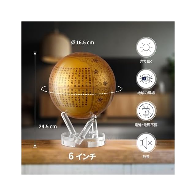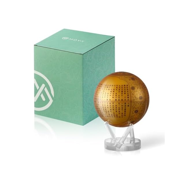 MOVA グローブ l 地球儀 l 般若心経 6インチ l ベース付き l 電源不要!室内光・自然光で動く自動回転地球儀 l オフィス・デスクトップ装飾・ユニークなギフト・インテリア装飾品 l 教育用、男性、女性、子供向け l 般若心経 15.2 CM