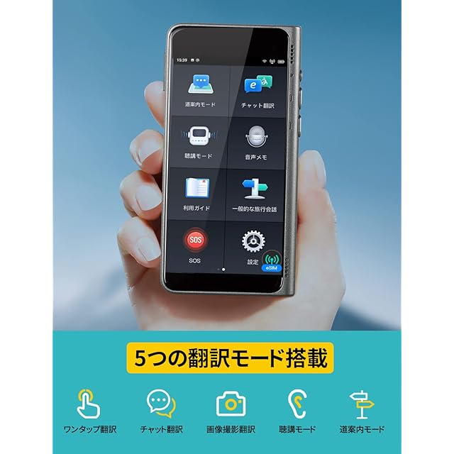 4つの翻訳モードを搭載:海外旅行でのあらゆる場面に備えた。ワンタップ翻訳モード:目の前の相手と手早く会話(翻訳)ができます。聴講モード:聴き取りたい相手の話を文字を起こしながら翻訳し続けてくれます。チャットモード:面倒なボタン操作不要、双方向の会話を同時翻訳してくれます。画像撮影翻訳:読めない標識、メニューが一目でわかるようになります。