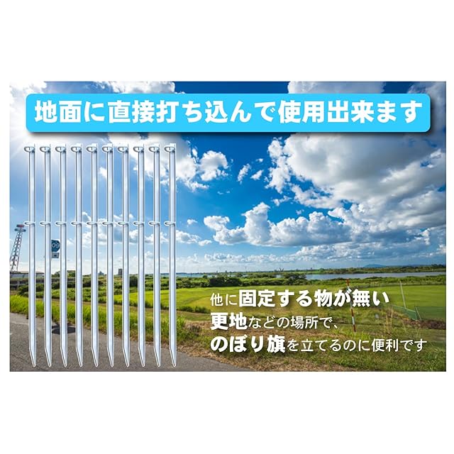 のぼり旗用 金属杭 白 ポール立て まとめ買いセット 鉄製 埋め込み式 かんたん設置 丈夫 スタンド 杭 (10本セット)