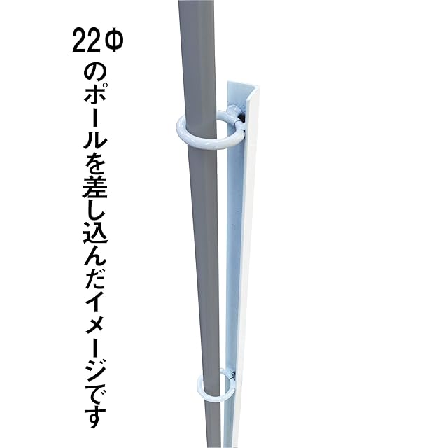ポールを差し込むリングが2か所あります。内径が35㎜となっておりますのでお手持ちのポールの口径をご確認してからご検討、ご購入ください。※商品のお買い求め1セットにつき、商品代から3円を赤い羽根共同募金に募金致します。