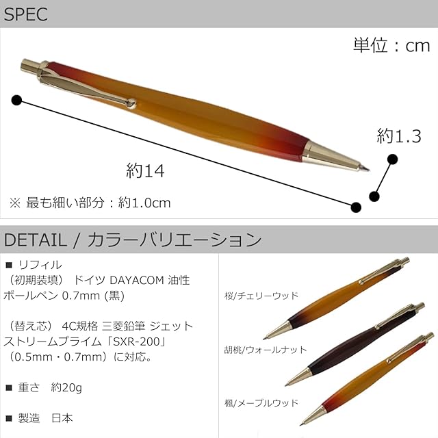 (ルミニーオ) luminio 木製 木軸 ボールペン 油性 0.7 高級 ノック式 書きやすい ギター風 サンバースト塗装 稀少木 日本製 職人 手作り 替芯4C【ジェットストリーム プライム (SXR-200) 0.5 mm 0.7mm 対応】 (桜/チェリーウッド)