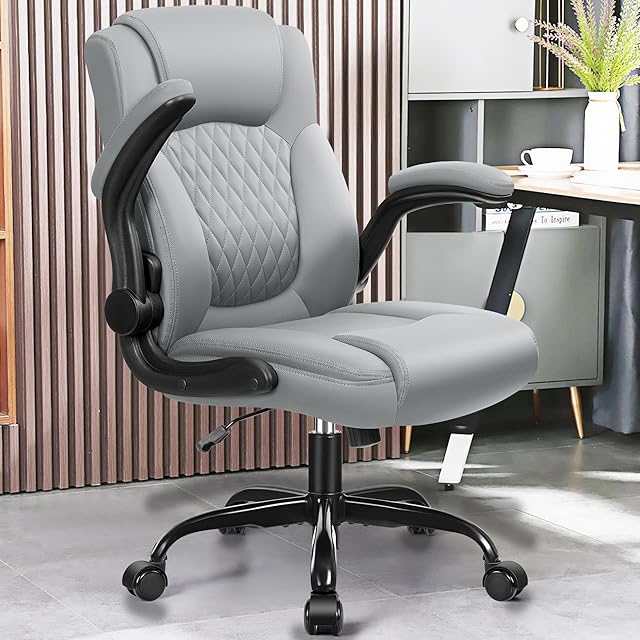 FelixKing オフィスチェア 低身長向け 360°回転 高さ調節可能アームレスト PUレザー 省スペース ゲーミングチェア ロッキング機能付き 社長椅子 コンパクトデスクチェア MP245 グレー