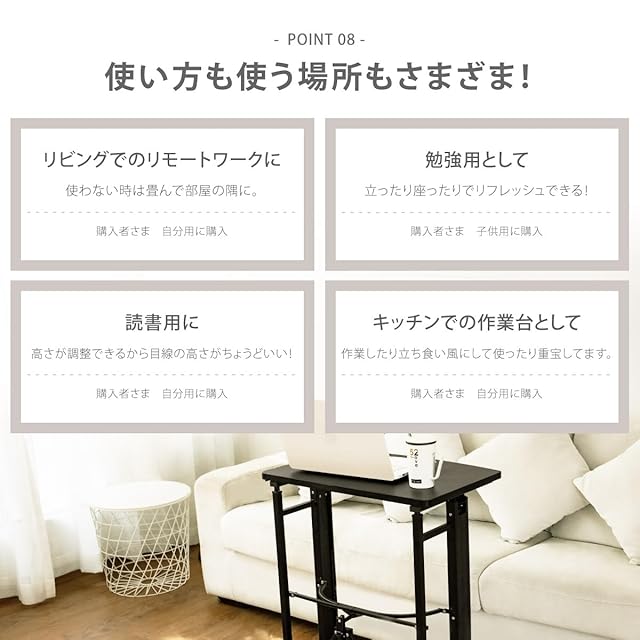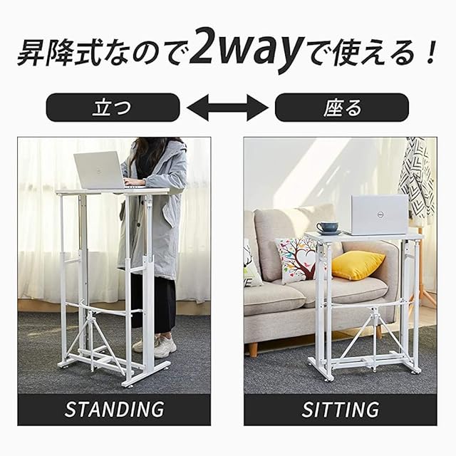 ✨【立ち作業対応】 昇降式なのでこのテーブル一つで立ち作業にも座り作業にも対応できます。 座ることに疲れたら、テーブルを引き上げ立つことで、姿勢改善の効果が期待できます。