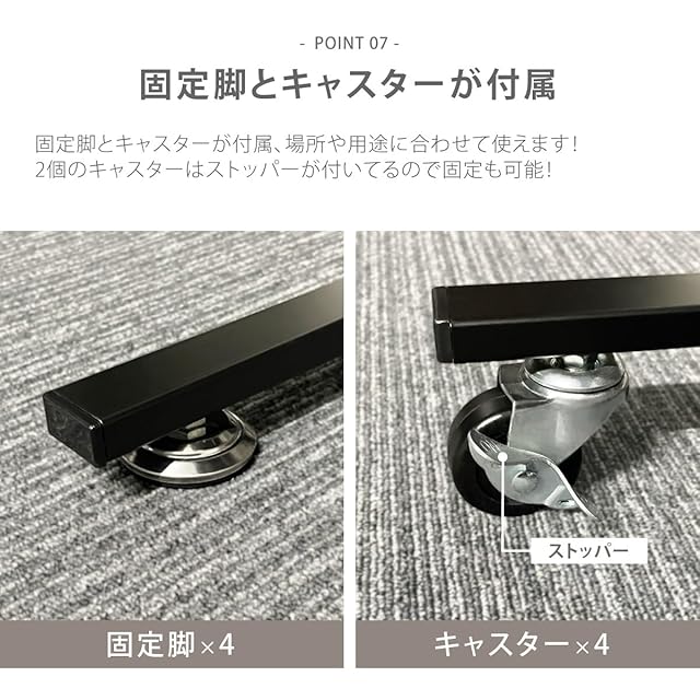 ✨【キャスター取り付けだけの簡単組立 】組立はキャスター(または固定脚)を取り付けるだけのみの簡単組立。 キャスターと固定脚をお好みでご利用いただけます。 キャスターはストッパー付き(2ケ)なので固定も可能です。