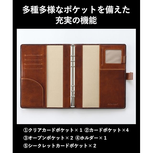 仕様:カードポケット×5、クリアカードポケット×1、シークレットカードポケット×2、ペンホルダー×1、オープンポケット×2、ホルダー×1、化粧箱入り