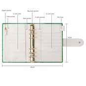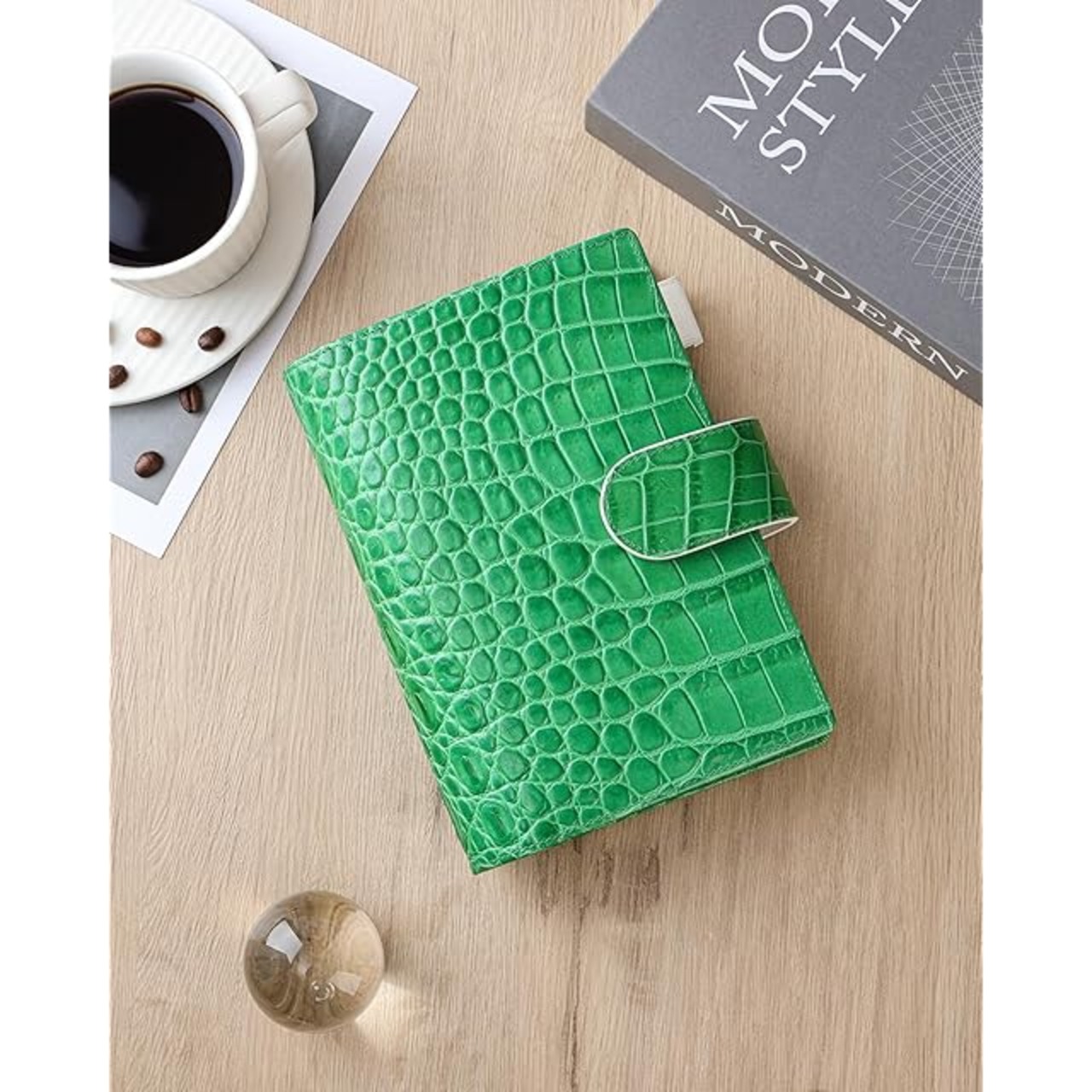 Smartfee システム手帳A6メモ帳 レザーポケット ワニ柄レザー ノート 6穴 リング約30mm オフィス用品(グリーン&ベージュ)