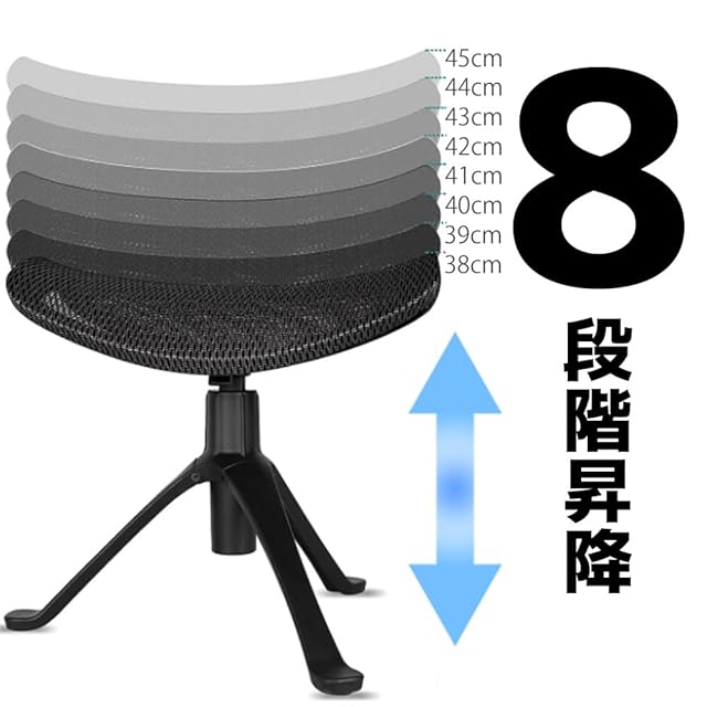 【8段階の高さ調整】8段階の高さ調整(38cm~45cm)ができ、お好みの高さでご使用できます。