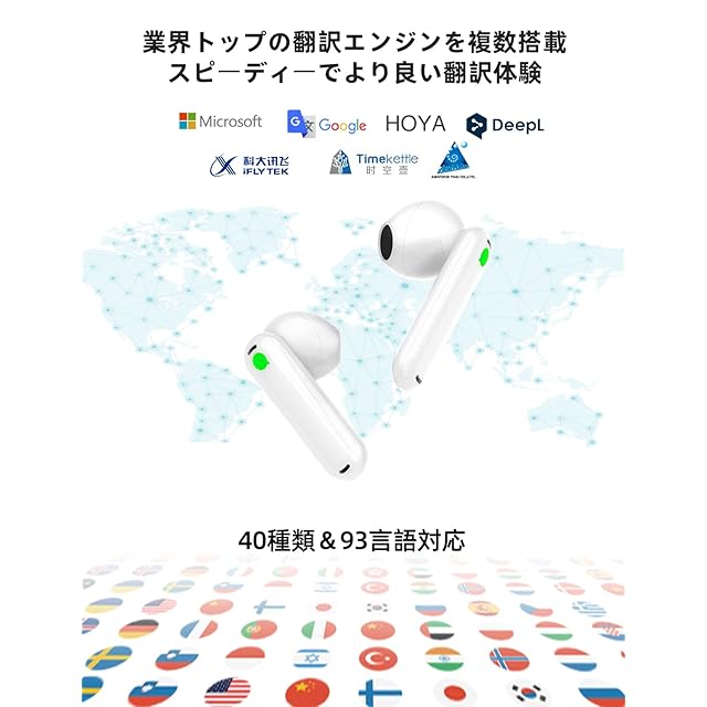 Timekettle WT2 Edge イヤホン翻訳機 タイムケトル 双方向同時通訳 オフライン対応 高精度 通訳機 軽量 指向性ノイズ低減 ハンズフリートーク 40種93言語対応 音声翻訳機 AI翻訳機 Bluetooth接続 専用アプリ iOS15.0&Android7.0以上対応 海外旅行 出張 音楽·通話非対応 ホワイト