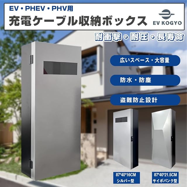 EV・PHEV・PHV用 充電ケーブル収納ボックス 縦長タイプ 電気自動車用 電源収納ケース コンセント 収納キャビネット 充電ケーブルオーガナイザーケース 充電器ホルダー EV 充電コード収納 メカニカルロック 冷間圧延鋼板 充電保護 盗難防止 防水防塵 屋内屋外兼用 2デザイン選べる (シルバー型[小窓付き])