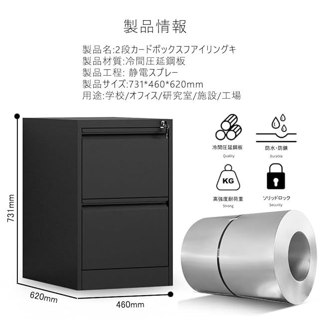 【金属構造】このファイルキャビネットは耐久性のある金属で作られており、頻繁な使用に耐え、寿命を延ばします。頑丈な構造により、重要なファイルを安定して確実に保管できます