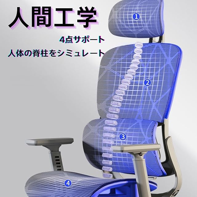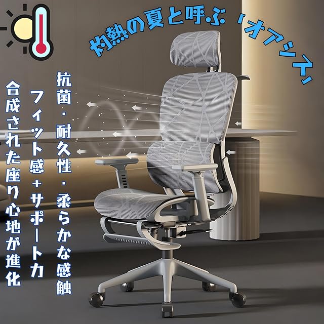 【高品質素材と自動適応ランバーサポート】通気性の良い龍紋編みメッシュ素材採用、長時間使用でもムレにくく快適。自動的に腰に合わせてサポート力を調整するランバーサポート搭載。長時間の着席でも腰への負担を軽減し、健康的で快適な座り心地を実現します。