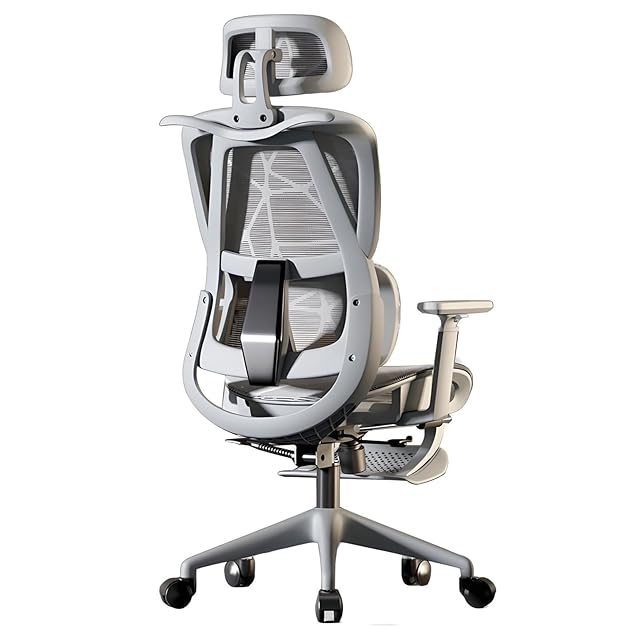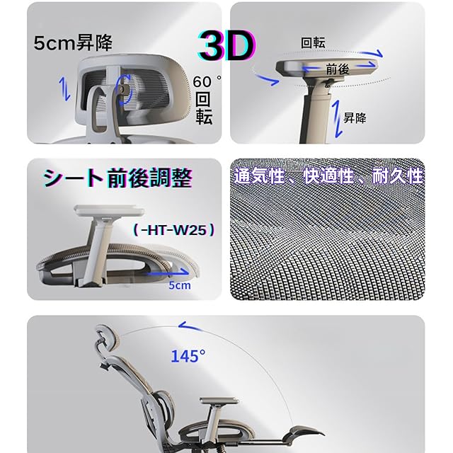 Huyatucol オフィスチェア 一人掛け 通気メッシュ 人間工学 リクライニング オットマン付き ロッキング機能 テレワーク 疲れない 3Dアームレスト 可動式ランバーサポート ゲーミング/勉強/事務用 (真っ灰,HT-W24)