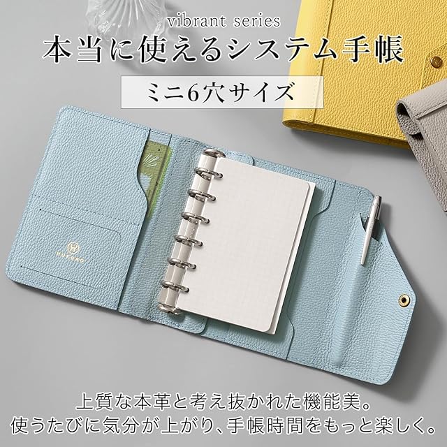 [HUKURO] システム手帳 ミニ6穴サイズ vibrant series 抗菌レザー B7 ミニサイズ 6穴 リング 20mm 手帳カバー メモ帳 スケジュール帳 ノート 本革 レディース メンズ 日本製 フクロ
