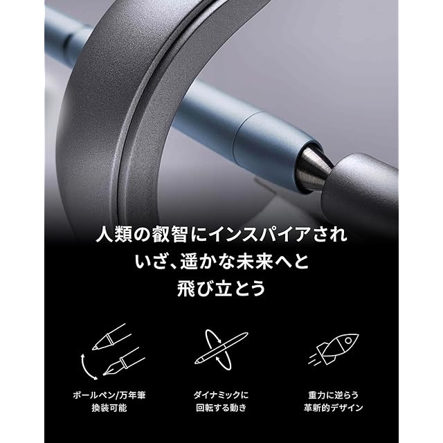 あなたのデスクの主役に:重力に逆らうよう設計されたHoverpen Futureは、人類の無限の可能性を象徴しています。60度の角度で一点にバランスを取りながら佇むその姿は、ミニマルで未来的なデザインとともに、ふと目にするたびに禅のような静けさをもたらします。