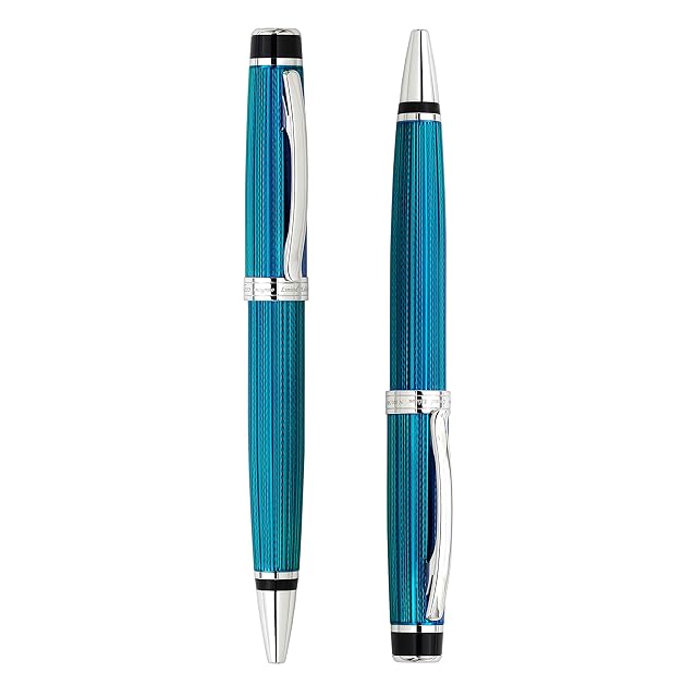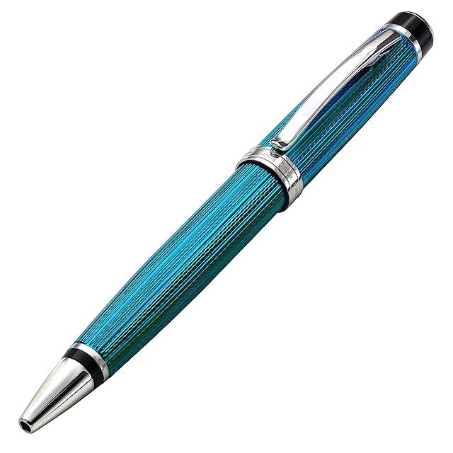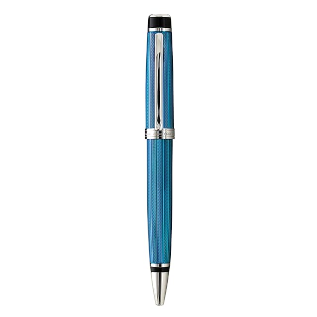ツイストアクションボールペン。 高光沢ラッカー塗装技術による立体ブルーカラー。照明によって色合いが若干変わります。 999プラチナメッキ継手付きのソリッドブラス構造。
