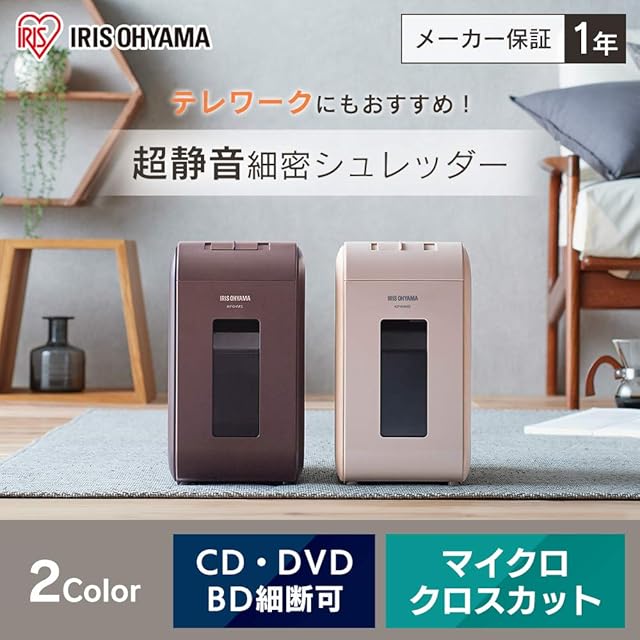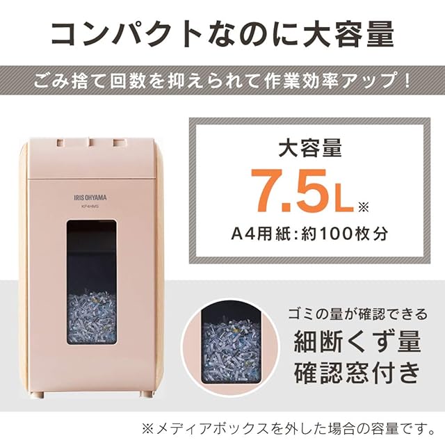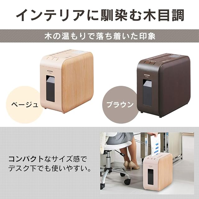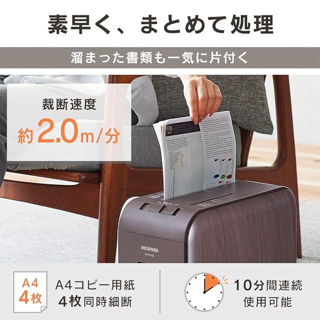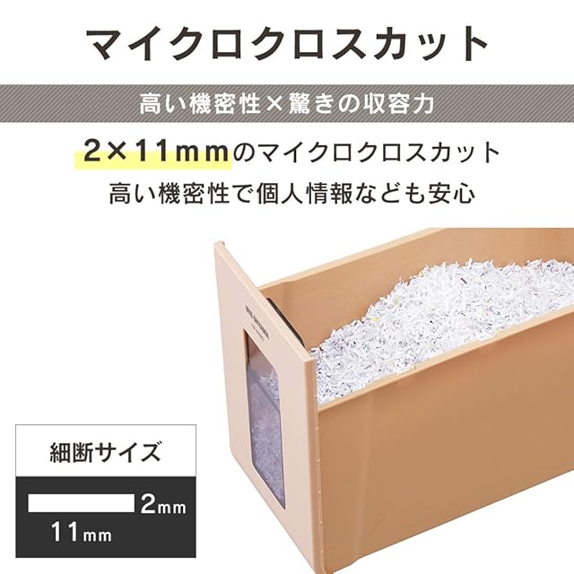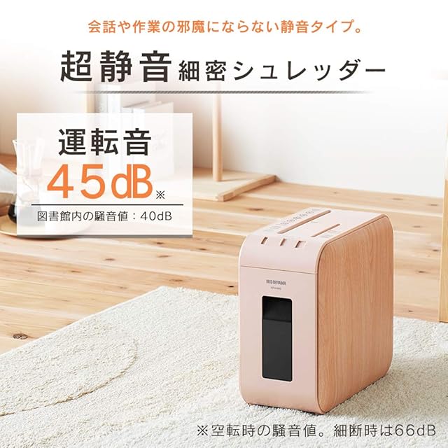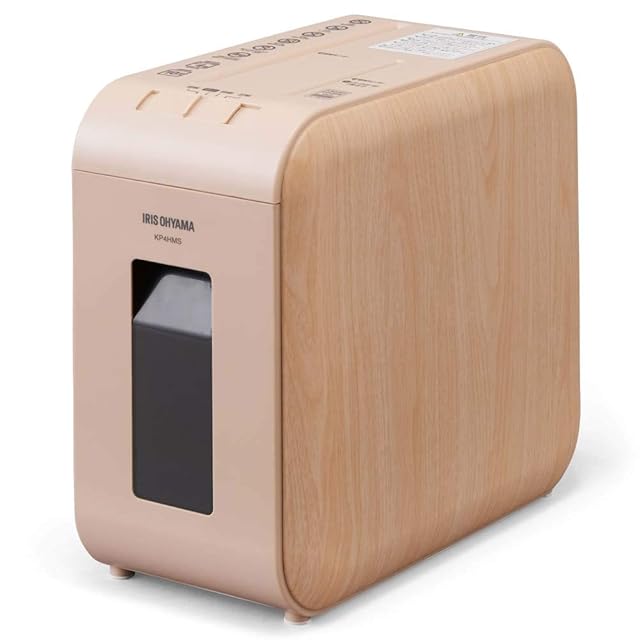 アイリスオーヤマ 静音シュレッダー 家庭用 細断枚数4枚 マイクロクロスカット 木目 連続使用10分 CD/DVD/BD細断可能 ダストボックス7.5L A4/100枚収容 KP4HMS-C ベージュ