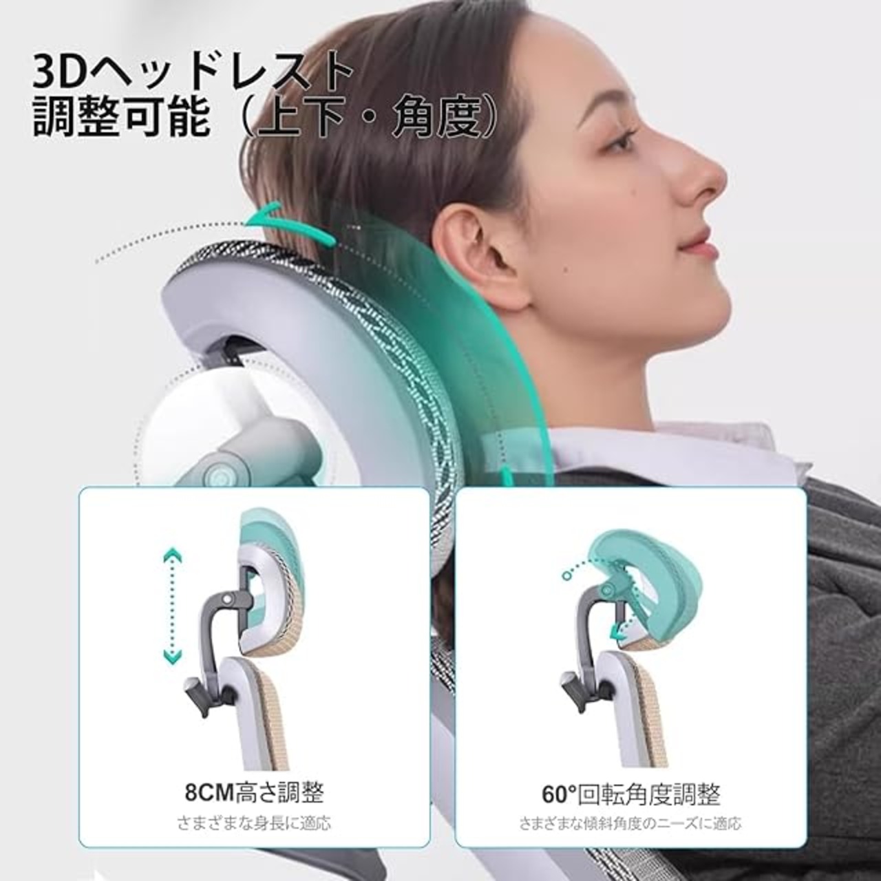 【多機能・高級感椅子】本椅子は上から3Dヘッドレスト装備して余分な頚支持問題を完璧に解決します。全身特製メッシュ素材で落ちる問題と通気性の問題を解決します。さらに一体化のオットマンと145度リクライニング機能は十分な休憩体験を満たします。5cmの座り奥行調整と10cmの高さ上下調節できて、ほとんどの人の身長に対応できます。