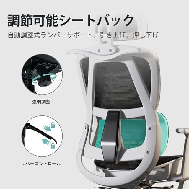【4Dランバーサポート・腰痛改善】自動適応ランバーサポートにより、休憩中に寄りかかっても、リクライニングして横たわっても、作業中にまっすぐ座っても、わずかな体の動きに合わせて背中全体にフィットします。自分自身の背骨の位置に合わせて調節でき、背骨のS字形状を保持し本来の自然な姿勢へ導いてくれるため、疲労軽減につながり将来の腰痛予防に役立ちます。