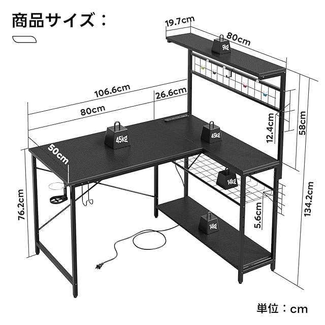 【再進化!Type-Cを搭載したデスクが新登場!】Bestierの最新のL字デスクは、従来のコンセント付きデスクを全面的に更新しました。2つのAC差込口、1つのType-Cポート、1つのUSB-Aポートを搭載し、一度に3台のデバイスを同時に充電可能。パワフルな3-in-1高速コンセント付きのパソコンデスクで、どのような機器でもフルスピードで充電ができます。さらに、配線もスッキリとまとめられ、いつでも作業をお楽しみいただけます!