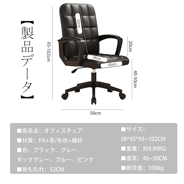 【人間工学に基づいたオフイスチェア】:このおしゃれな椅子は人間工学に基づいて設計されている。座りっぱなしの腰に強い負担をかけず、安心して作業や勉強できます。それに、一人でも簡単に組み立てることができます。時間を無駄にしない。