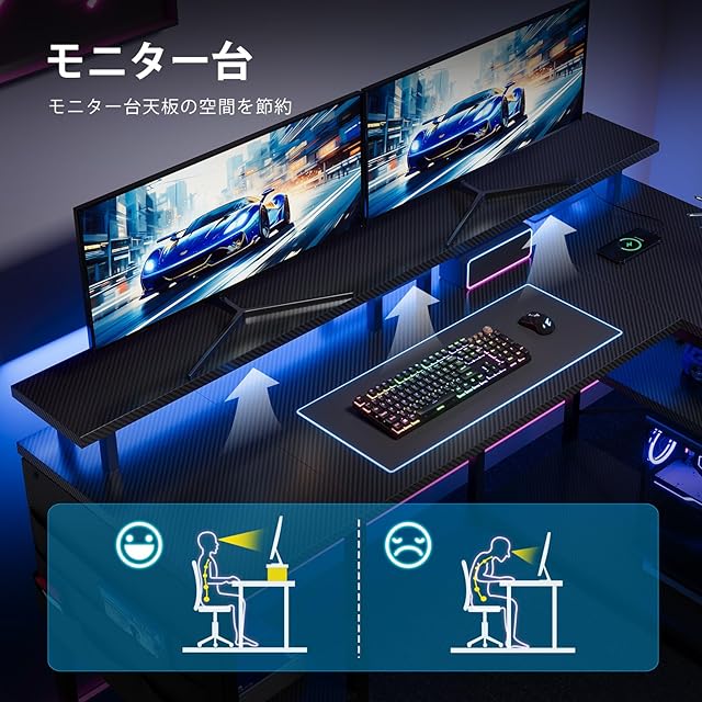 【様々なシーンで大活躍】L字ゲーミングデスクは部屋の隅を最大限に活用でき、家庭でもオフィスでも日常作業に十分なスペースを確保できます。こちらのコーナーデスクは実用性が高くて色々なシーンに合わせて使えます。ゲームプレイ、パソコン作業用、テレワーク、在宅勤務などとしてご利用いただけます。