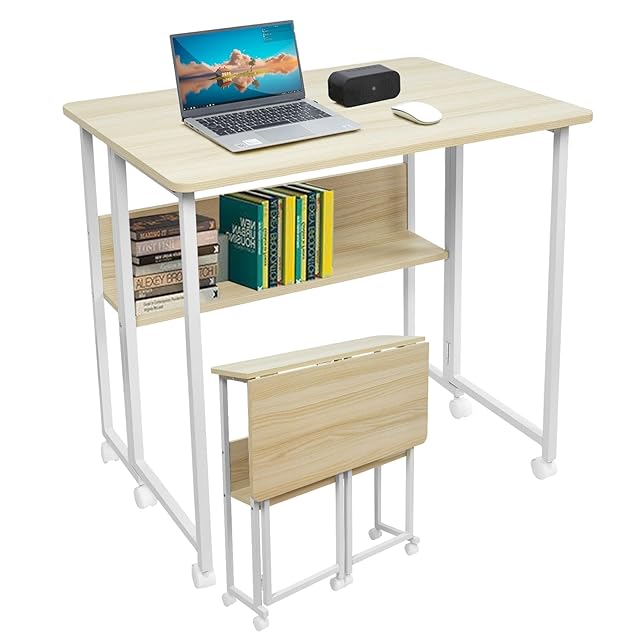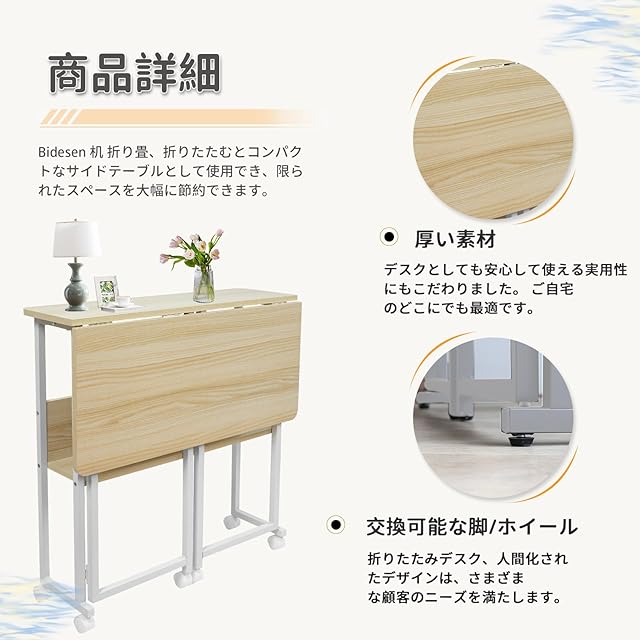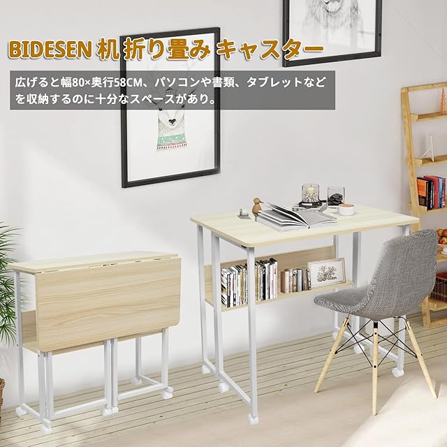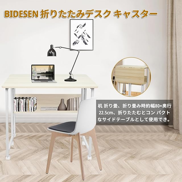 Bidesen 折りたたみ机 机 折り畳み 幅80x奥行58x高さ75cm 省スペース 折りたたみデスク 多機能 折畳みデスク キャスター付きテーブル (白もみじ)