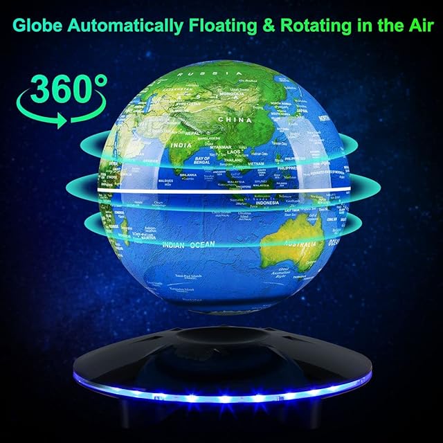 LEDライトとタッチコントロール: この基盤および地球は両方作り付け LED ライト、力があるとき、基盤表示青いライトです。地球が首尾よく浮かぶとき、浮遊地球は、表示白いライトつきます。それは暗闇でつけられたときかなり涼しく、美しく見ます。ベースと地球儀の点灯・消灯を制御するために、ベースの電源ボタンサインに触れることができます。