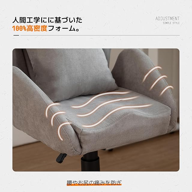 デスクチェア 跳ね上げ式アームレスト ファブリック オフィスチェアパソコンチェア 360°回転 座面昇降 通気性 事務椅子 勉強 仕事 椅子 在宅勤務 椅子 PCチェア 疲れない W字型カット