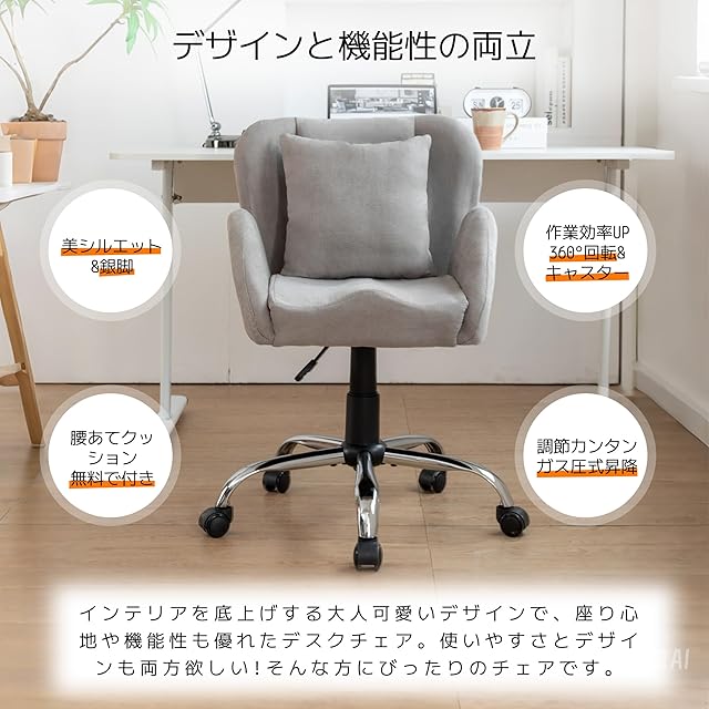 「腰あてクッション無料で付き」腰部分にかかる負荷をしっかり支えキレイな姿勢を保つことを可能に。長時間のデスクワークの腰の負担を軽減。