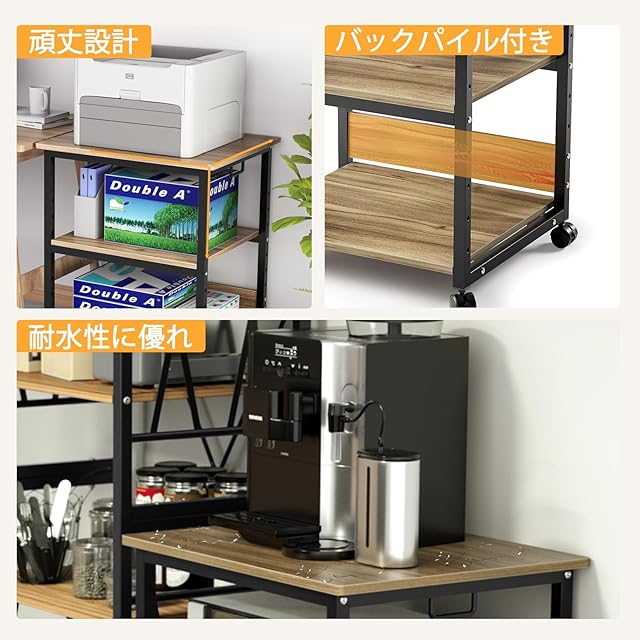 ✅[細部までこだわる] ★プリンタの動作中や、重たい機器を乗せた場合にのグラつきを防ぐバックパネル付き ★前輪はストッパー付きキャスターなので固定やメンテナンス時のちょっとした移動に便利です。 ★取っ手が付いているので移動時に便利です。 ★カラー : フレームカラーも黒で統一した、高級感を感じさせるブラック。現代のライフスタイルにスッと溶け込みます。