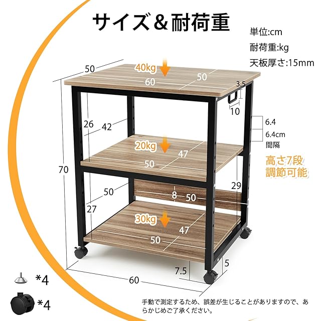 ✅【完成品サイズ】幅60 X奥行50 X高さ70cm(キャスター付き状態)、キャスターを取り外してアジャスターに変更できます。規格はM8です。