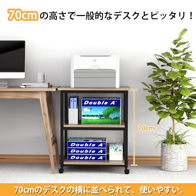 DEWEL プリンター台 キャスター付き a3 プリンターラック プリンターワゴン コピー機 台 プリンタ 収納 サイド ワゴン 複合機 机下 ラック 棚 大型 幅60 奥行50cm 高さ70cm 高耐荷重