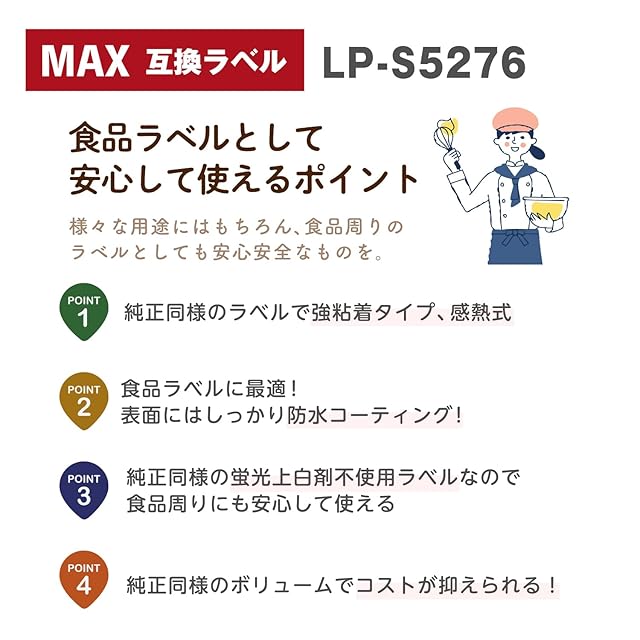 【商品内容】マックス MAX 楽ラベ LPシリーズ LP-S5276 互換ラベル 食品表示用感熱紙タイプ 防水コーティング。