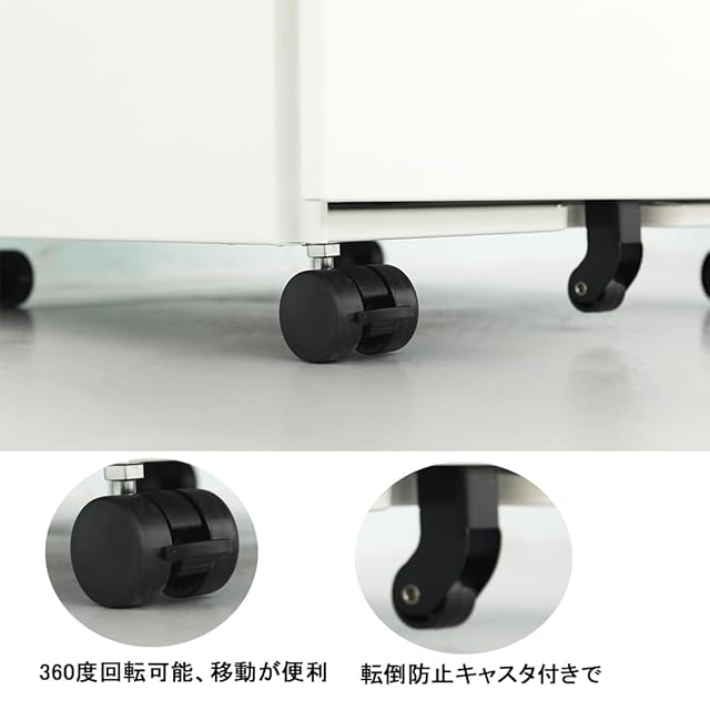 【デスクワゴン キャスター付き】移動便利,移動スムーズなキャスターを搭載。手軽に移動ができるので、レイアウトの変更や掃除の際も簡単に移動ができます