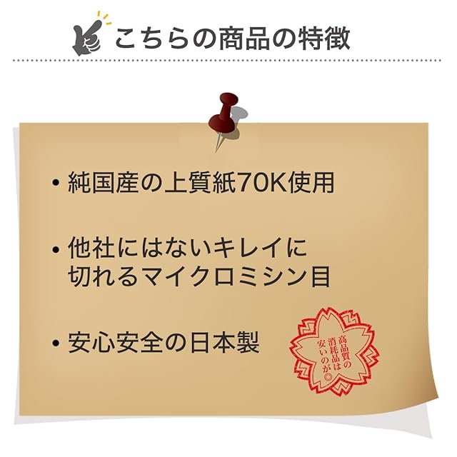 対応プリンタ:ページ(レーザー)プリンタ/純国産の上質紙70K使用