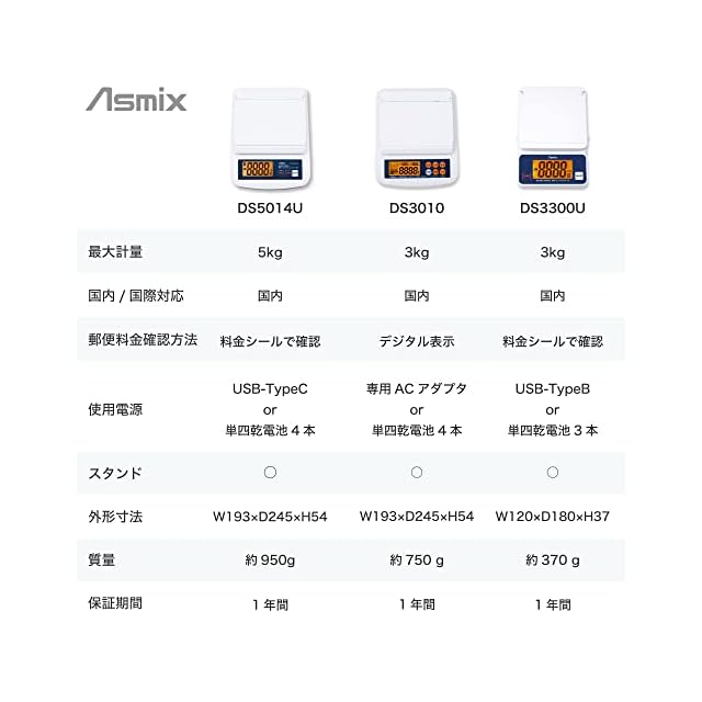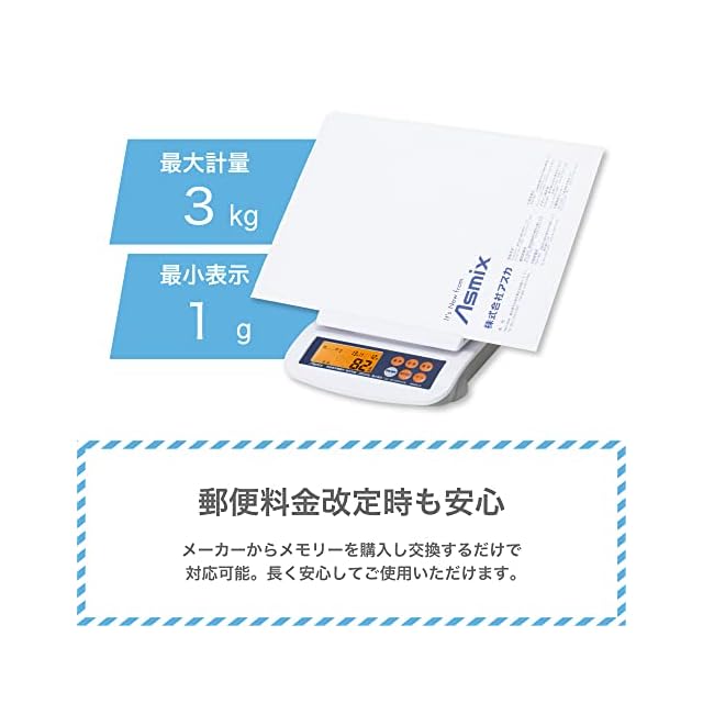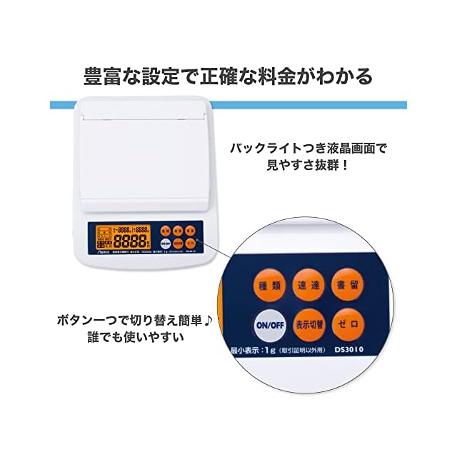アスカ 料金表示デジタルスケール 最大計量3kg DS3010 国内郵便料金を瞬時に表示 バックライト付き液 ホワイト