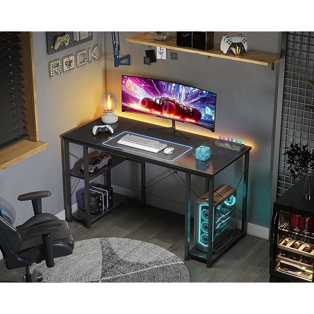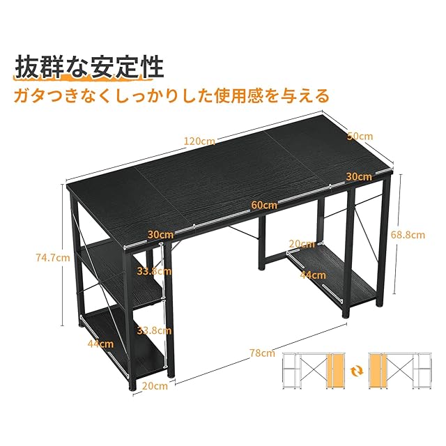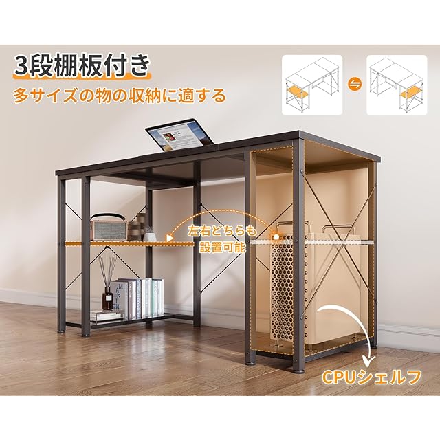 AODK ゲーミングデスク パソコンデスク 机 pcデスク 幅120cm 両側ラック&CPUスタンド付き gaming desk ゲームデスク 勉強机 オフィスデスク 在宅ワークデスク 長机 左右入れ替え対応 おしゃれ ブラック