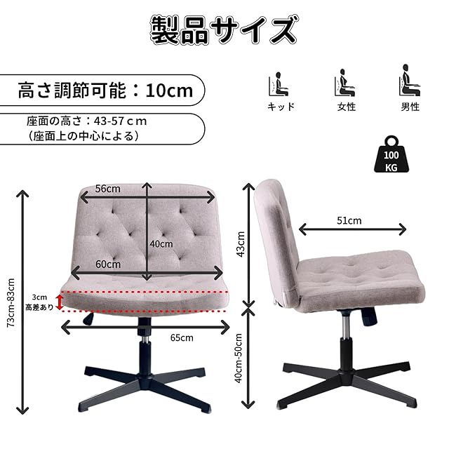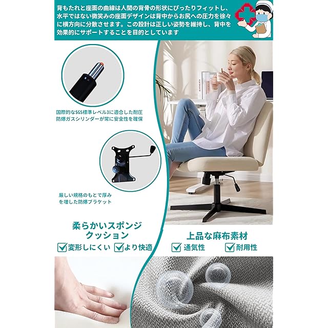 【ファッションと機能性の両立オあぐらチェア】このおしゃれなオフィスチェアは、デスクチェア ファッションと機能性の両立を追求し、オフィスや家庭での使用に適しています。伝統的な肘掛けや煩雑な装飾を排除し、快適さと優雅さ、シンプルさを重視したデザインです。オフィスでも家庭でも、さまざまなシーンに簡単にマッチし、デスクチェア ファッションを提供します。