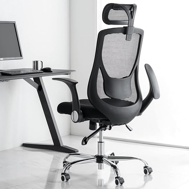 タンスのゲン オフィスチェア ハイバック 跳ね上げ式 アームレスト ヘッドレスト メッシュ ランバーサポート ロッキング デスクチェア 椅子 チェア 学習椅子 ブラック 65090110 (44747)