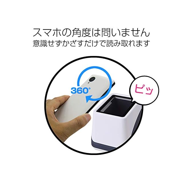 自動検知機能(ハンズフリー)、コードをかざすだけで読み取ります。IP52(防塵・防滴)1.5M防落下に加え高い動作性能!
