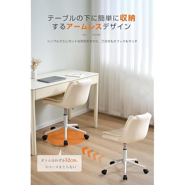 [KATYOU]デスクチェア コンパクト オフィスチェア 疲れない デスクワークチェア 椅子 チェア 勉強椅子 パソコンチェア 回転椅子 事務椅子 deskchair 北欧 テレワーク 疲れない 事務 学習 勉強 在宅 ワーク回転 キャスター付き 昇降高さ調節可能 (ホワイト)