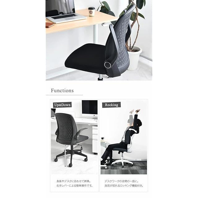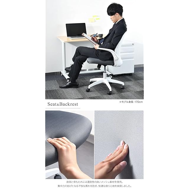 タンスのゲン オフィスチェア スタイリッシュ背面 跳ね上げ式 アームレスト メッシュ ロッキング デスクチェア おしゃれ 学習椅子 ホワイト 68300001 01(68828)