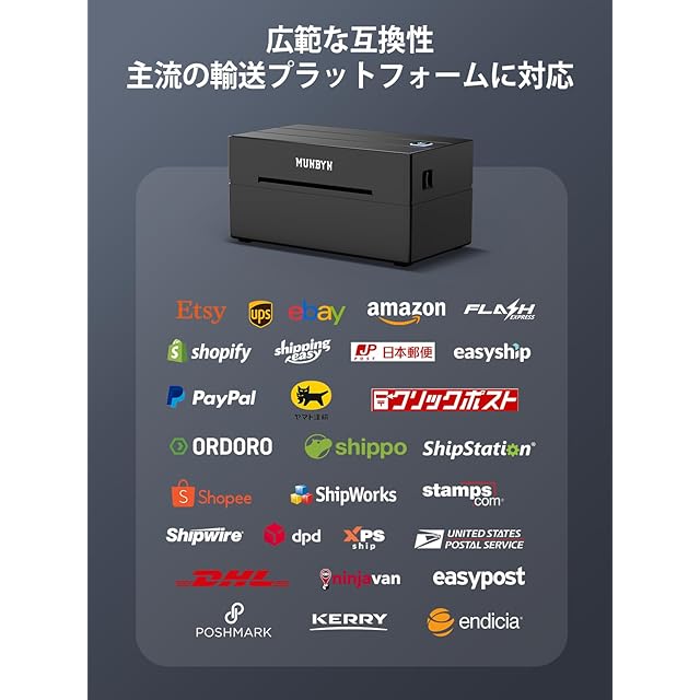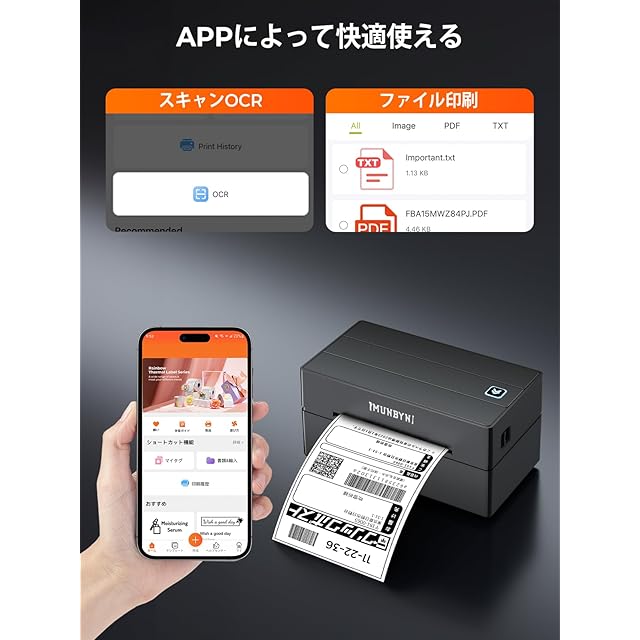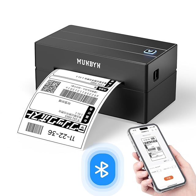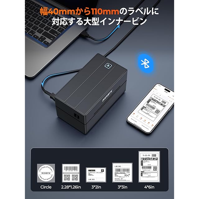 MUNBYN Bluetoothラベルプリンター 180mm/s 高速印刷 ワンクリック設定 ホーム&オフィス用 日本郵便対応(クリックポスト) 幅108mm(最大) A6ラベル対応 Windows&Mac対応 203dpi 専用エディタ付き インボイス登録済 ブラック