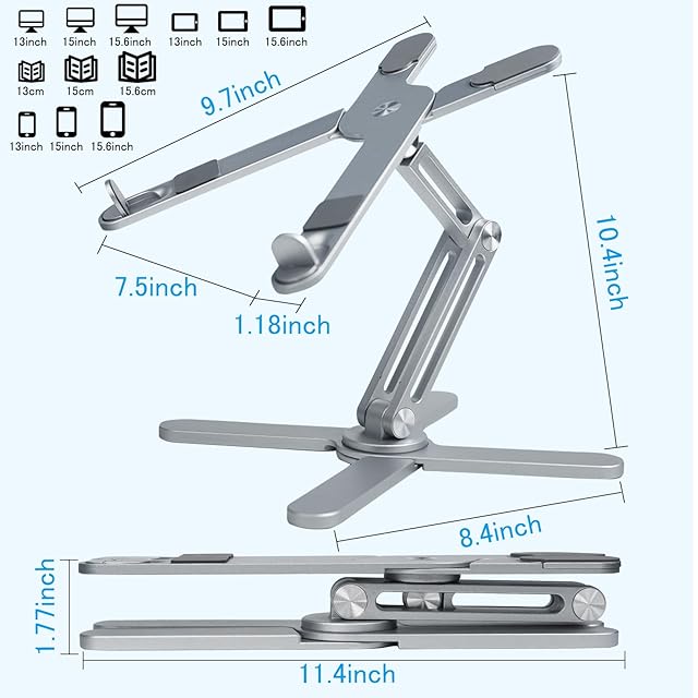 H&W ノートパソコンスタンド 360度回転 PCスタンド角度/高さ調節 タブレットスタンド アルミ合金製 折りたたみ式 ipad スタンド 片手操作 軽量 滑り止め 放熱 17インチまでデバイスに対応 会議室/家庭用/出張用です 収納袋付き (シルバー)