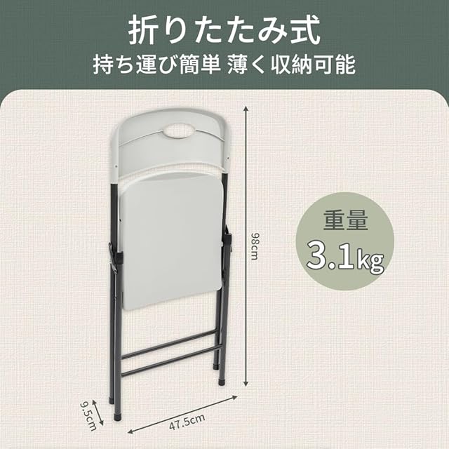 【収納後】幅47.5x奥行9.5x高さ98cm 折り畳んでスッキリと収納することができます。コンパクトミーティングチェアとして、単重は3.1kg以下と、持ち運びが簡単です。