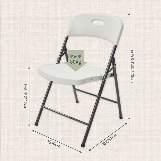 【基本仕様】幅40x奥行51x座面高さ46cm(背もたれ高さ78cm) フレームは丈夫なスチールで作られ、耐荷重は80kgと、素晴らしい安定性を誇ります。