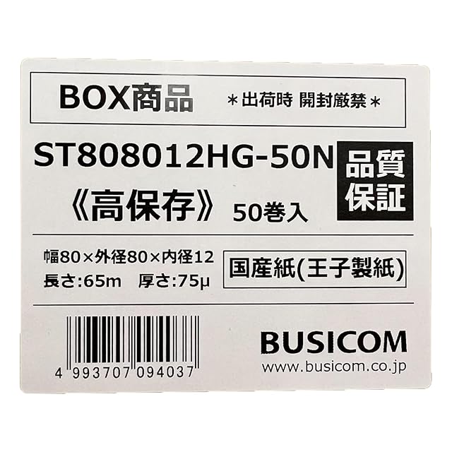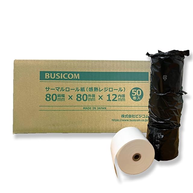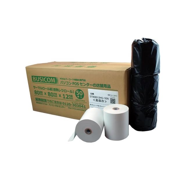 ビジコム純正 国産 感熱レジロール紙 80mm幅×外径80φ×内径12mm 50巻 芯あり 高保存 TSP100III・mC-Print3対応 ST808012HG-50N