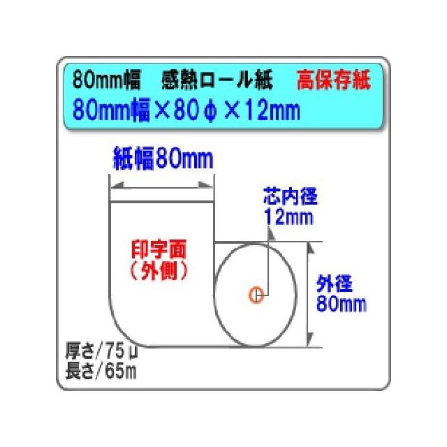 ロール紙サイズ:幅80mm×外径80mm×内径12mm (80×80×12)