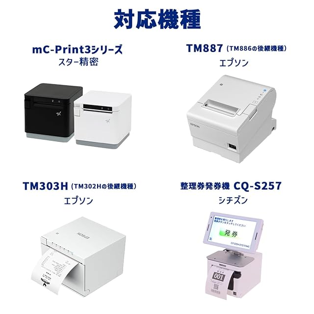 ロールの直径80mm スター精密・TSP100III/mc-Print3、エプソン・TM-T88VI/ TM−m30など、小型プリンタに対応。 Airレジ,Airペイ,Square,STORES(旧:Coiney),スマレジなど各レジアプリ、UberEats対応。